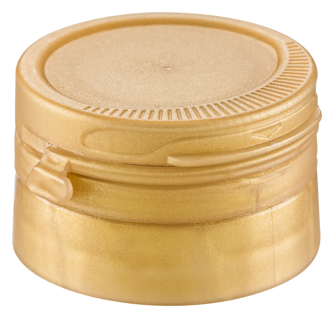 32口PET瓶用双片组合盖.上盖为PP料生产,有二次密封功能,有外侧防盗斯拉条,百利盖专利铰链有弹力,可开启角度>120度,消费者体验佳;下盖为PE料搭配双扣结构以及折边设计扣位,密封性能好,半口拉环设计,可控制较小倒出油量;上下盖有定位功能.